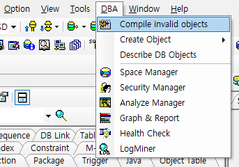 예전 버젼 Orange4 에서는 DBA -> Compile invalid objects 를 통해서 전체 재컴파일을 할 수 가 있었는데요..