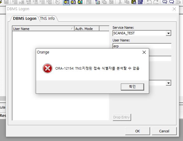 sql*net에서는 접속이 정상적으로 이루어지는데 tns오류가 발생합니다.